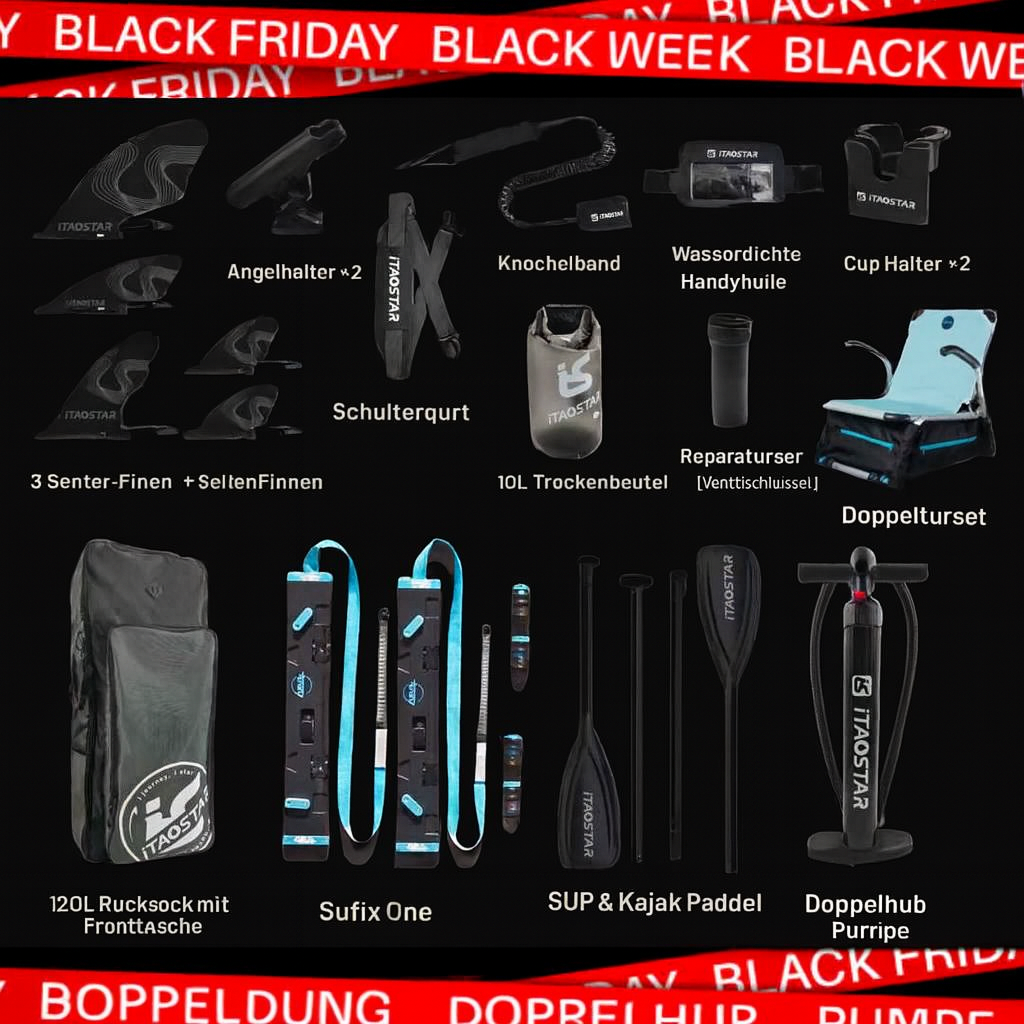 Der SUPFIX-HUNTER ( Anglerboard ) wurde speziell für Angler entwickelt, die auf dem Wasser maximale Stabilität, Komfort und Funktionalität erwarten. Mit einer Länge von 3,65 m, einer Breite von 99 cm und einer Höhe von 20 cm bietet es eine extrem große Standfläche und sorgt auch bei Wellengang oder Bewegungen an Bord für sicheren Halt. Das robuste 4-Finnen-System – drei Finnen hinten plus eine zentrale Mittelfinne – garantiert hervorragende Spurtreue, hohe Stabilität und präzise Kontrolle beim Paddeln oder Manövrieren.